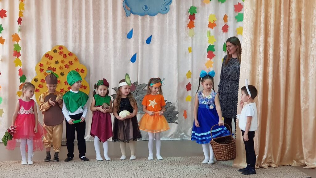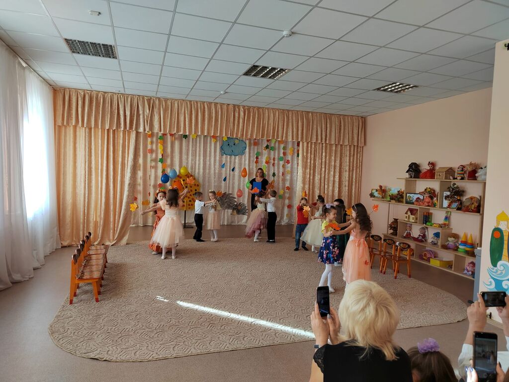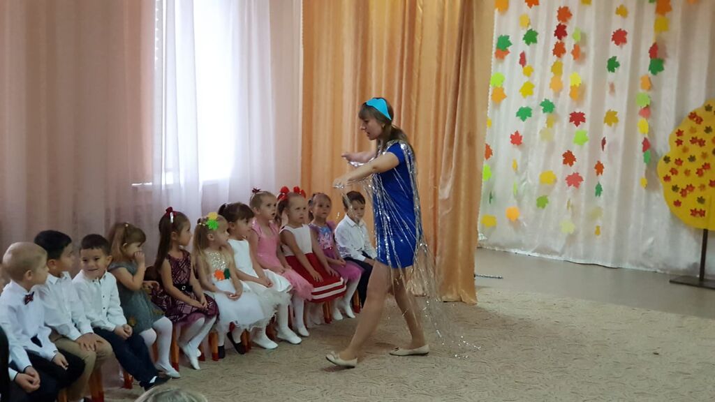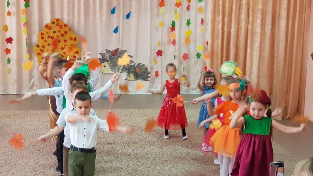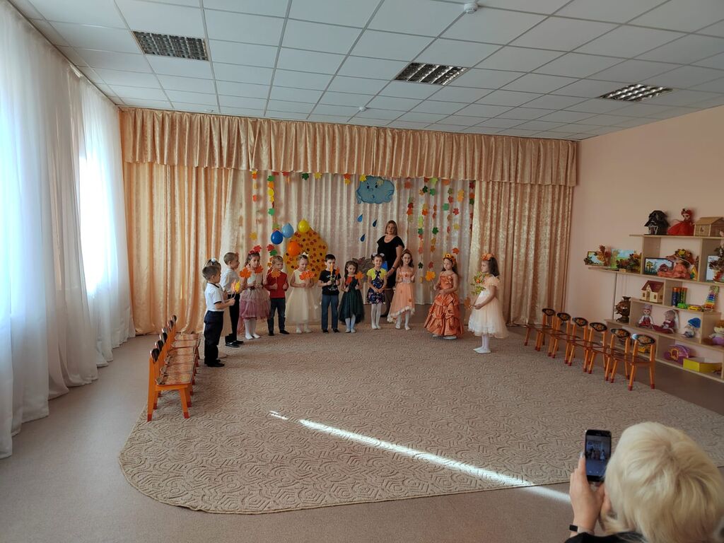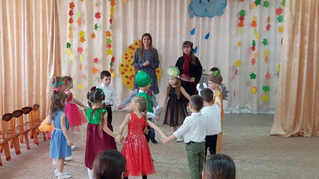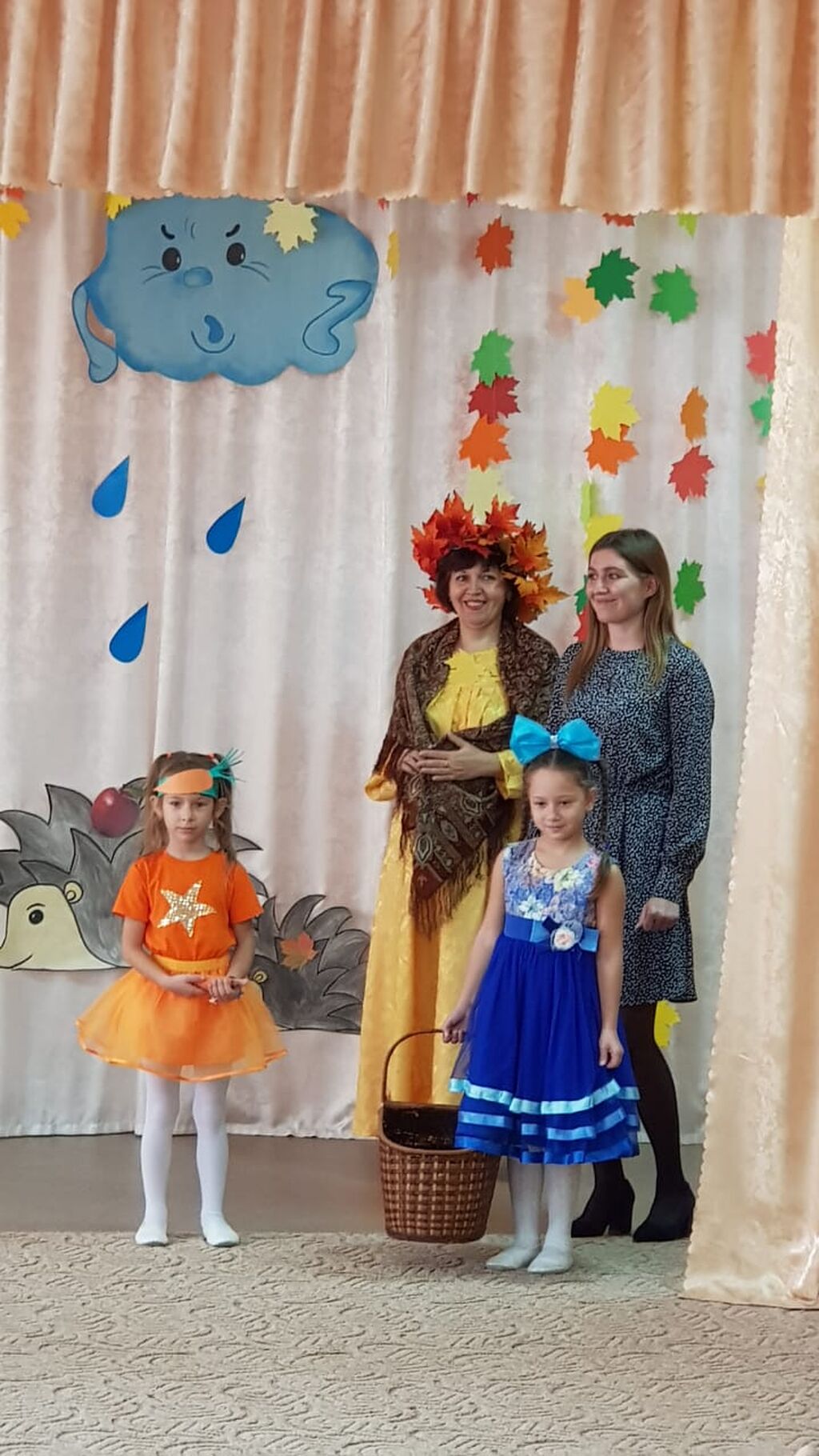В нашем детском саду прошли осенние праздники. И несмотря на то, что осень называют «унылой порой», тем не менее, кто как не дети больше всего радуются яркому украшению зала, макетам деревьев, увешанных зелёными, жёлтыми, красными и коричневыми листочками. 27 октября Осень пришла в гости в среднюю и старшую группы, дети встречали её как дорогую гостью: песнями, танцами («Танец с листочками», песни: «Осень в гости к нам пришла», «Тише, тише, тишина», «Листопад», «Урожай собирай»), стихами, сценками! Осень с её погодными явлениями всегда навевает грусть, но только не на наших праздниках. Настроение создают своими шутками - прибаутками и другие главные герои: ведущие и сказочные персонажи. На этот раз на праздник к ребятам приходила и Простуда, и Лесовичок, и Дождик. Герои провели с детками разные игры: «Прятки», «Оббеги лужи», «Зонтики», «Сбор урожая». 28 октября прошёл праздник для самых старших дошкольников . На празднике прозвучали стихи об осени и очень красивые песни: «Ах, какая осень», «А дождик кап, кап, кап». Кроме этого, ребята исполнили несколько танцевальных композиций: «Парный танец», , «Музыкальный выход с с листочками». Особенно радует детей появление на празднике сказочных персонажей. На этот раз к подготовишкам пришли в гости Волшебный листок, Капелька, которые загадывали ребятам загадки и проводили весёлые соревнования.