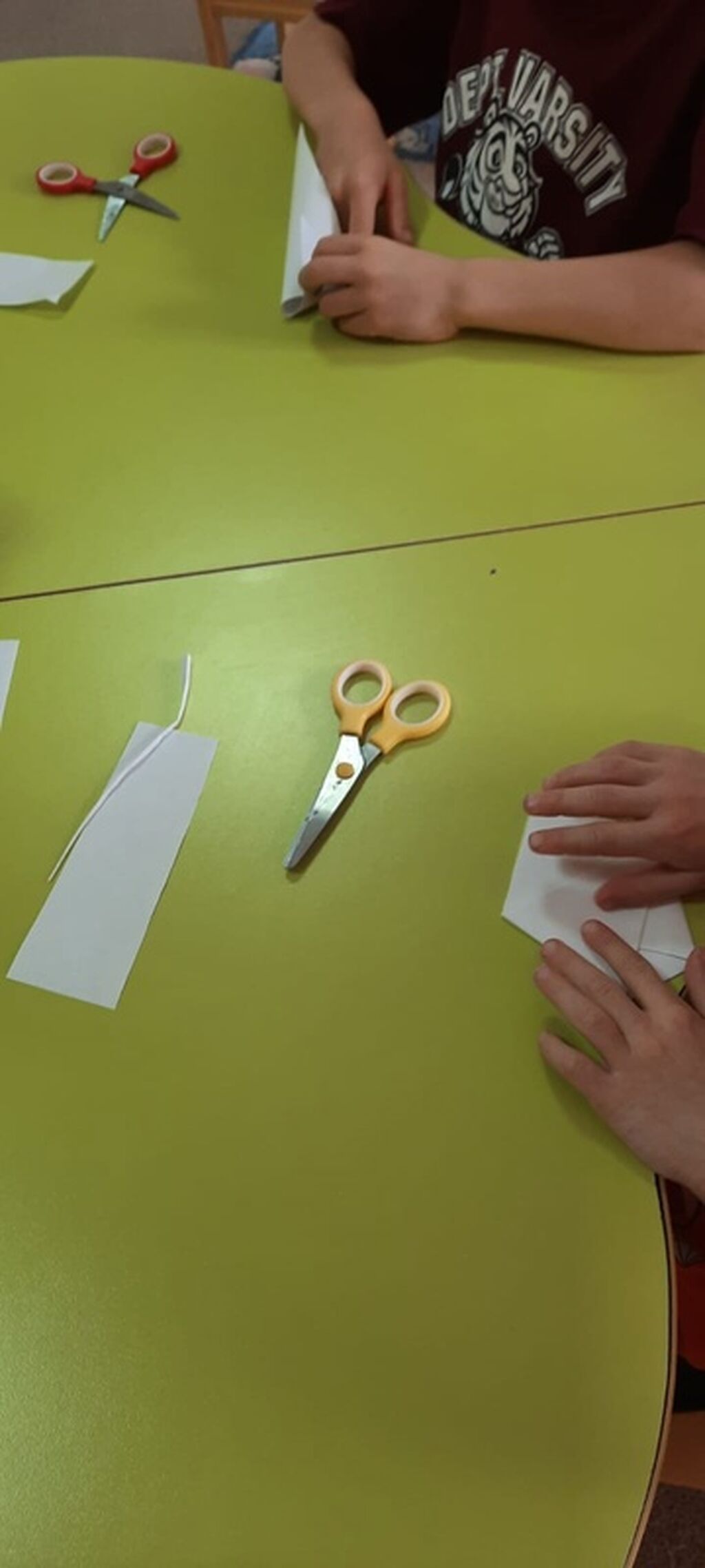 А также упражнялись в приёмах вырезания ножницами по прямой и по косой линии.