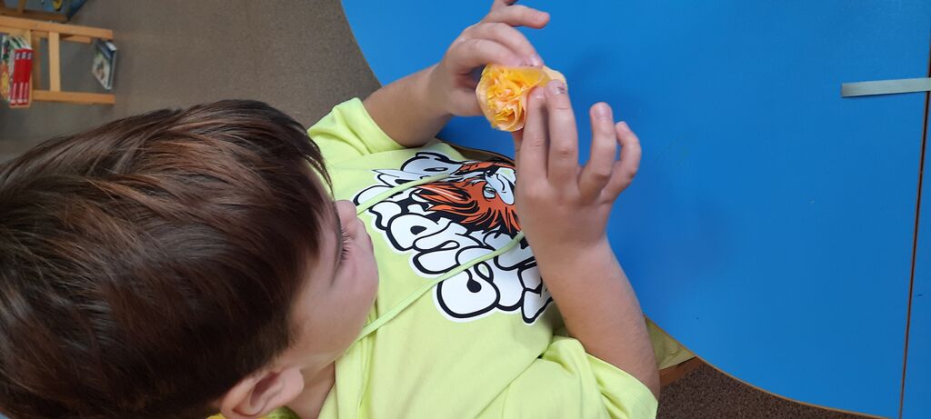 Воспитаники группы "Улыбка " познакомились с технологией плетения на примере бумажного коврика.