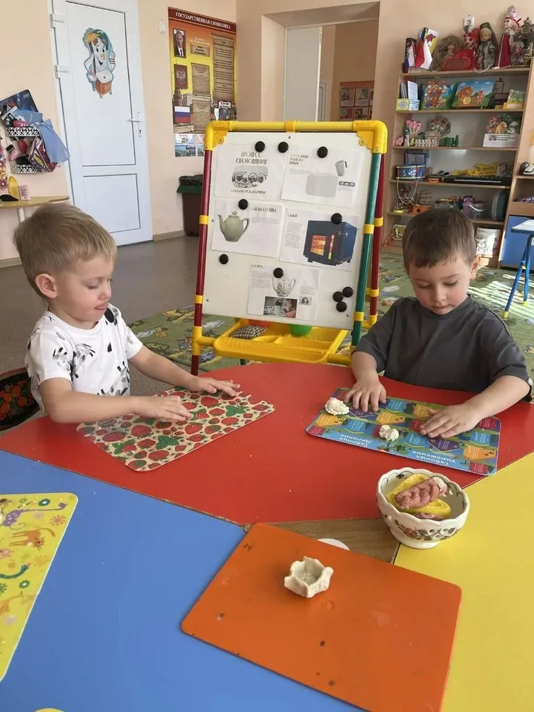 Но это ещё не всё! Ребята попробовали себя в роли мастеров: раскрашивали раскраски по мотивам Семикаракорской керамики, лепили из соленого теста и пластилина тарелочки, чашечки, проявляя фантазию и творческий подход.
