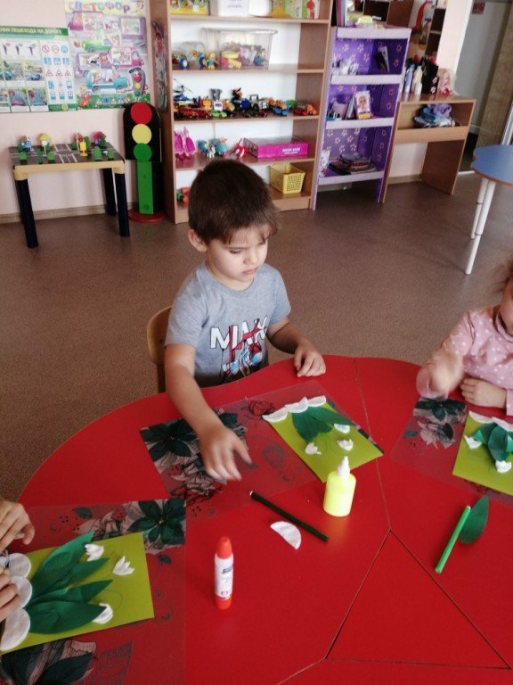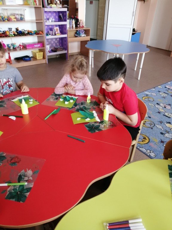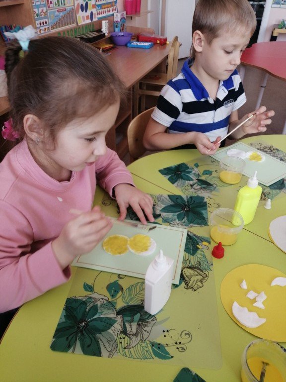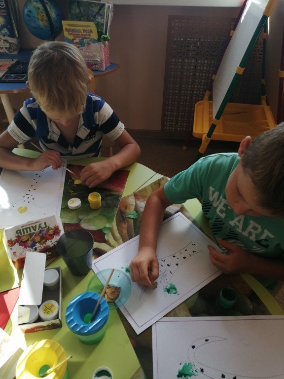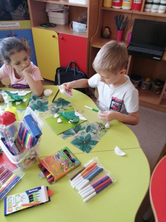 Тимофей и Леша заканчивают свои аппликации