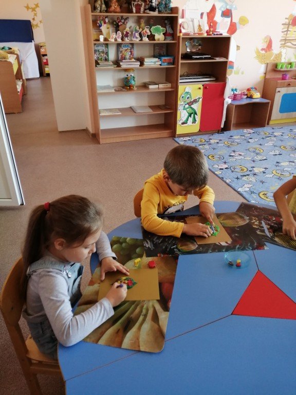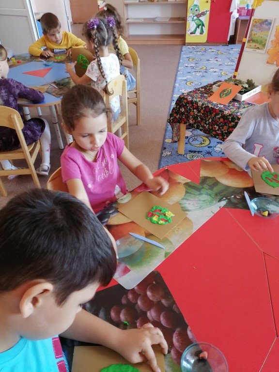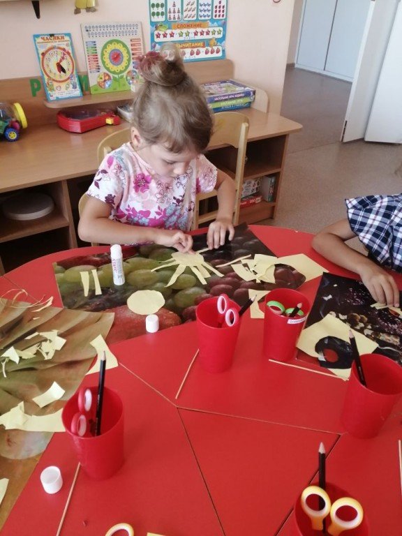 Слева направо. Варвара и Альбина усердно стараются над созданием осеннего листочка