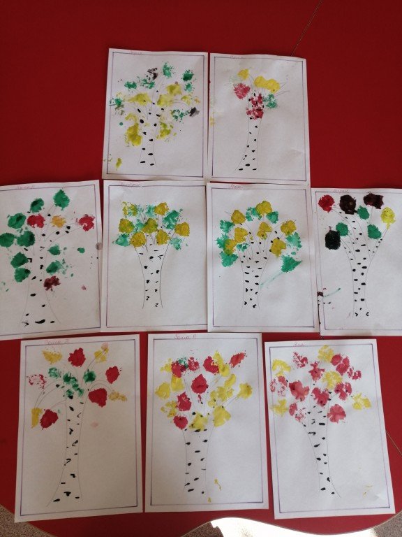 Материал: Гуашь, сухие листья березы, кисть, вода