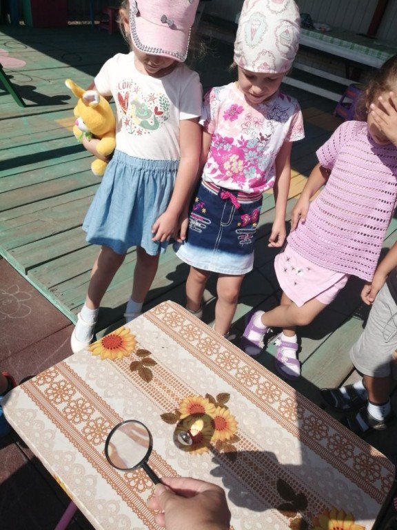 Наблюдаем как солнышко через лупу нагревает предметы
