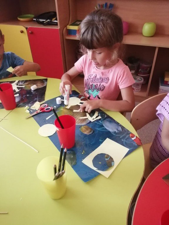 Варечка приклеивает лучики