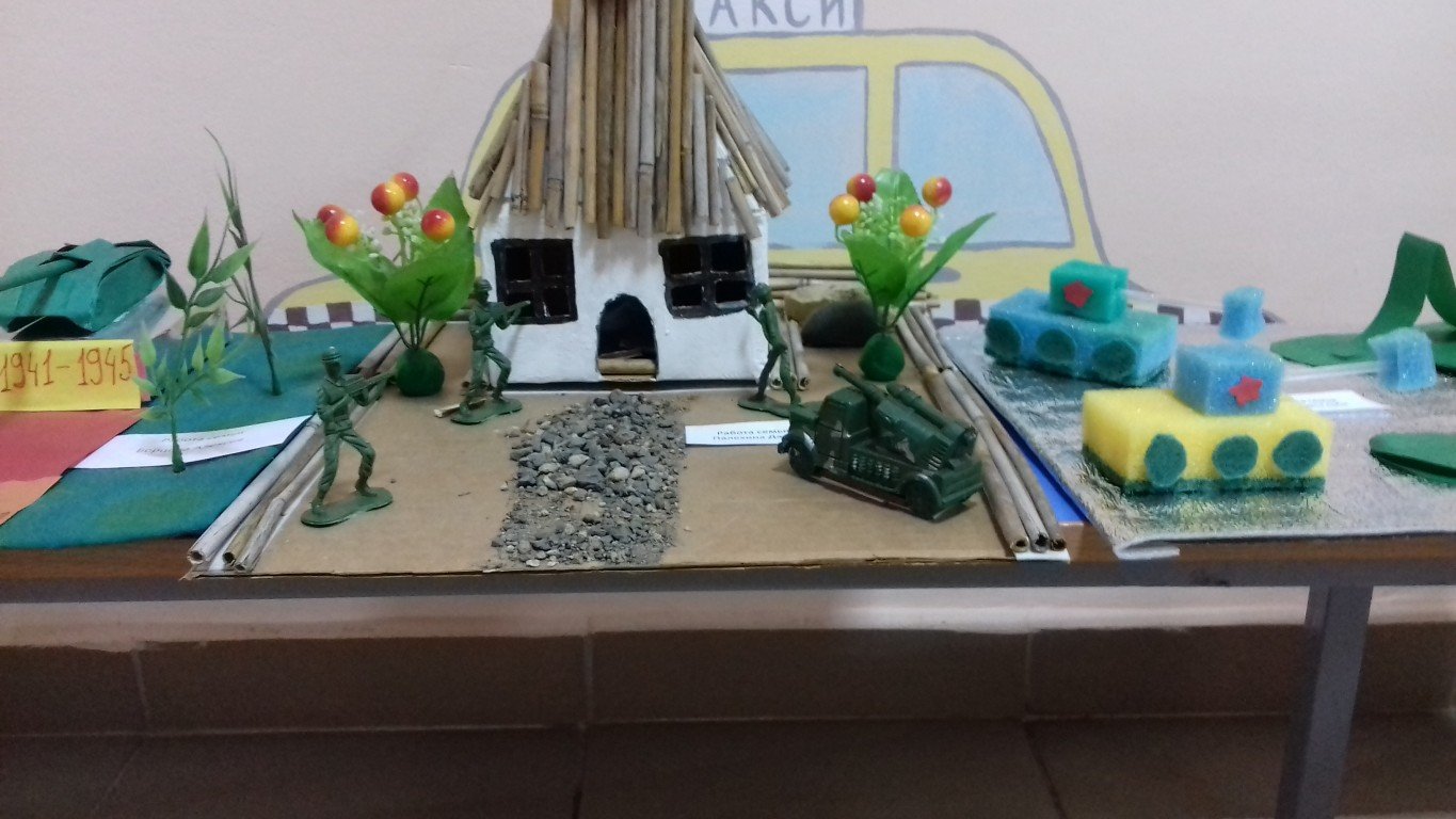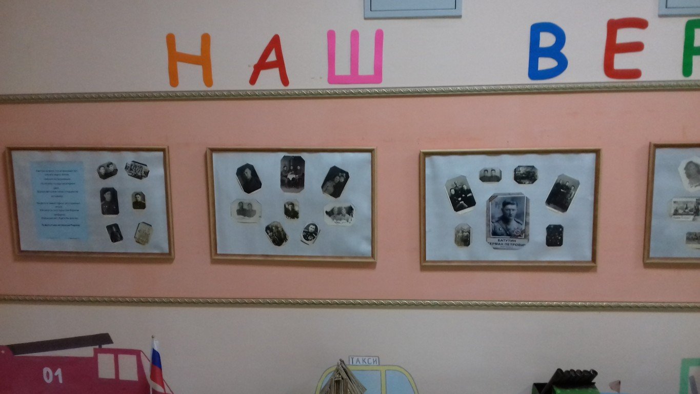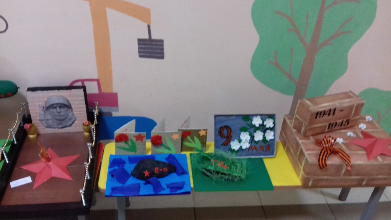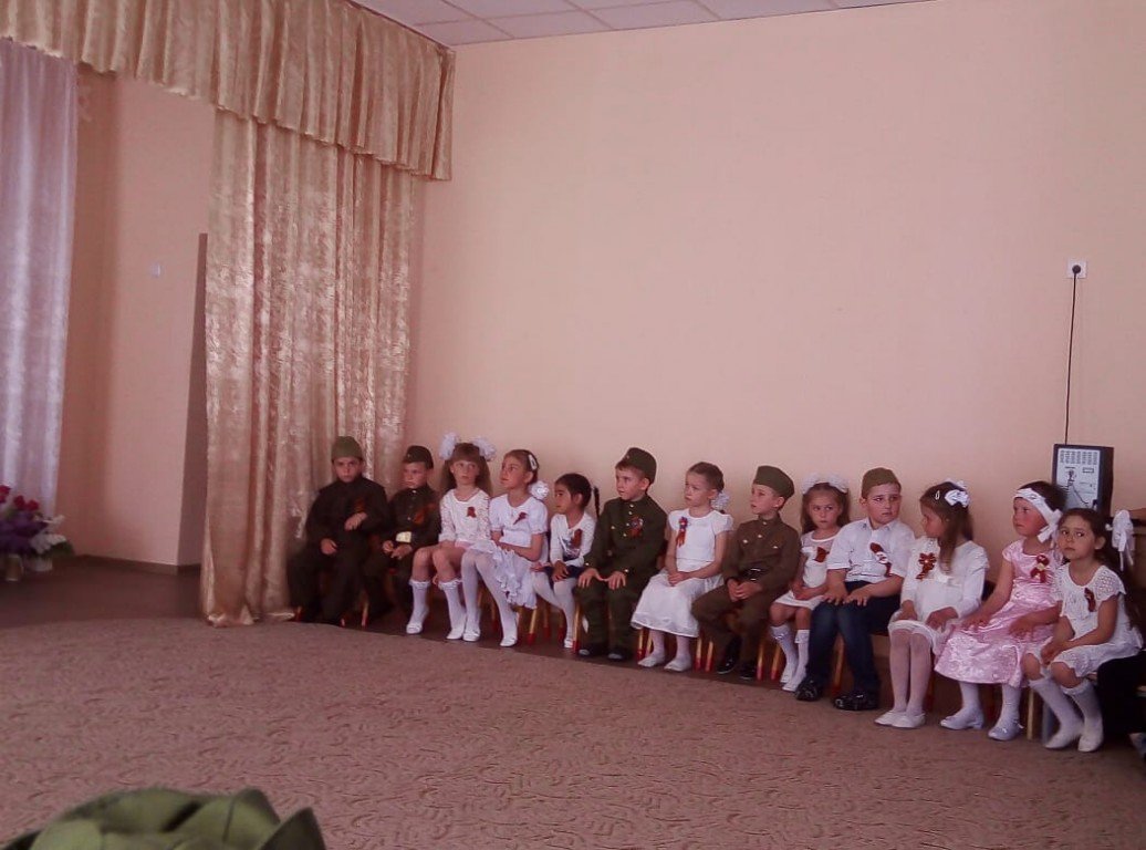 В нашем детском саду в рамках реализации этого проекта!» состоялись мероприятия, посвященные празднованию Дня Победы. С детьми в группах были проведены занятия, беседы о подвигах советских людей, были оформлены выставки детских работ. В детский сад приезжали гости из художественного музея г. Таганрога. В экспозиции музея были представлены картины русских художников о войне.