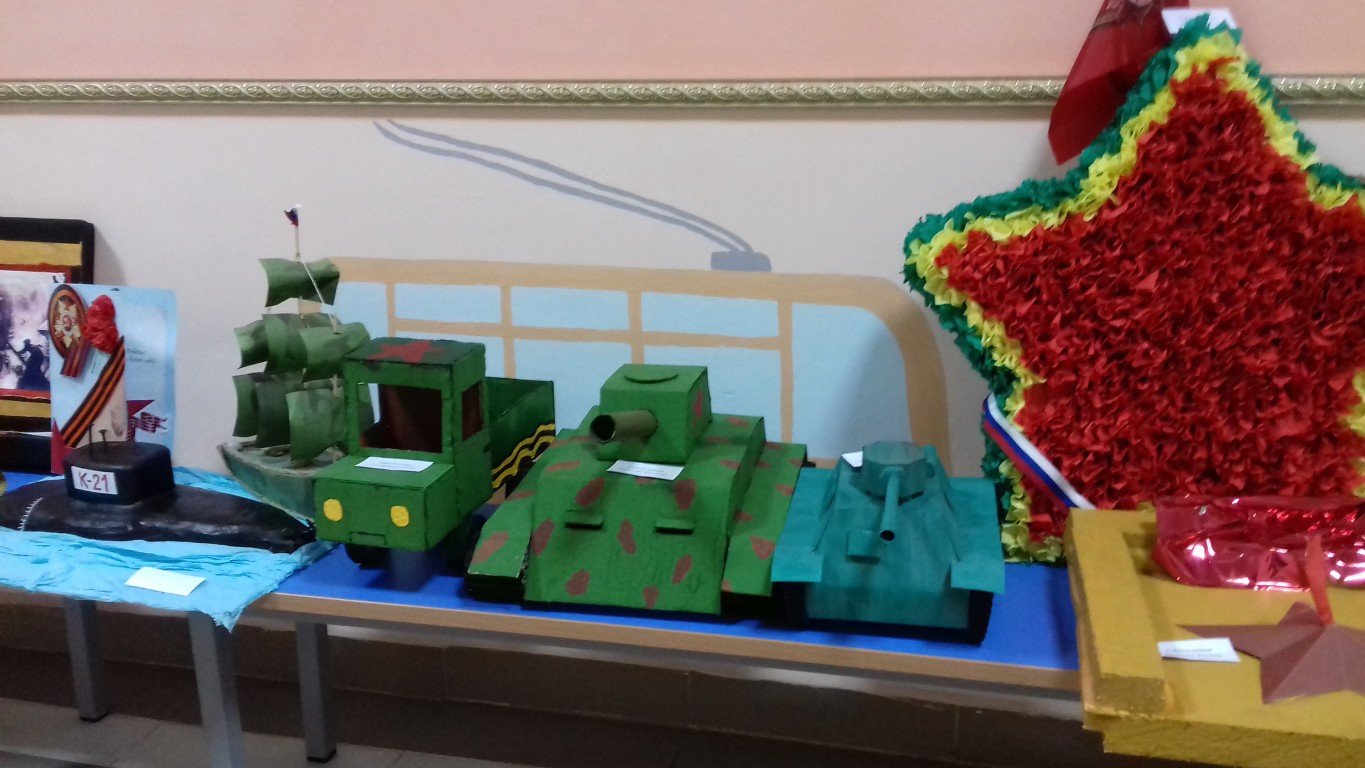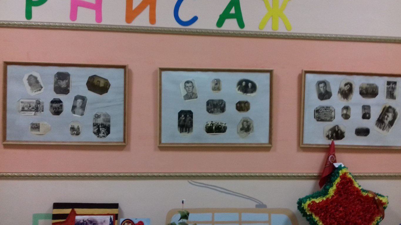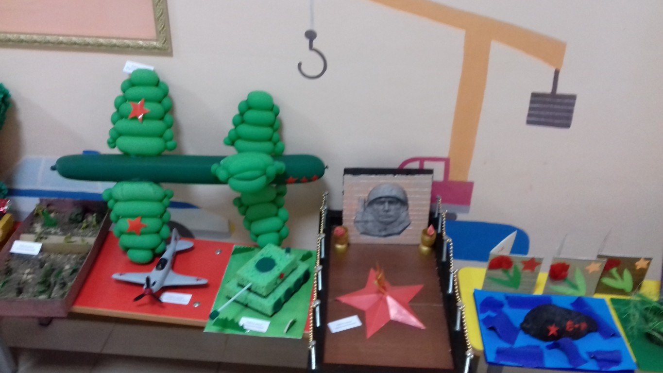Благодаря участию родителей в каждой группе были созданы стенгазеты, посвященные празднику, оформлены выставки: «Фотографии военных лет», «Военная техника».