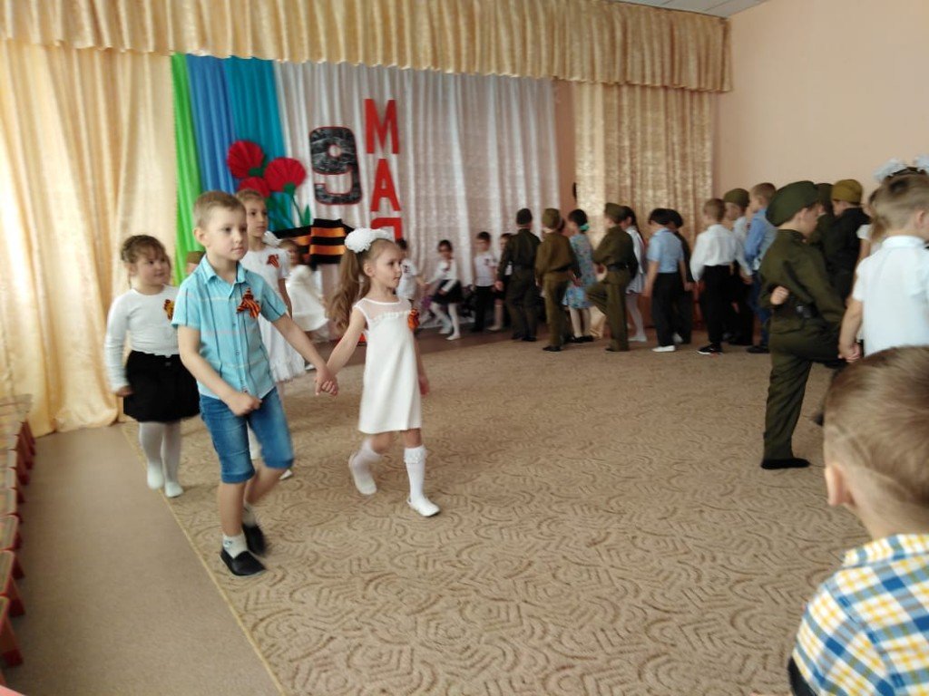 А праздник стал итогом этих мероприятий. Дети исполняли песни: «Шли солдаты на войну», «Прадедушка». Гости увидели сценку «Алексей, Алешенька, сынок» в исполнении детей подготовительной группы; воспитатели детского сада показали участникам праздника танец «Вдовы России»; девочки и мальчики соревновались в эстафетах «Перевяжи раненного солдата», «Доставь письмо в штаб по кочкам», «Передай конверт». Дети старшей группы исполнили танец «Военный вальс».