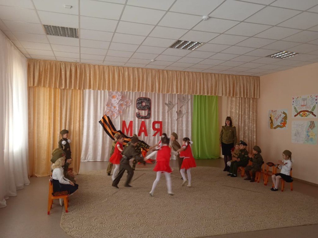 Прекрасная проникновенная музыка песен военной тематики, вдохновенное исполнение дошкольниками песен: «Катюша», «Маруся», «Алеша », «Солнечный круг» явились восторженным составляющим праздника, внесли яркую ноту в это торжественное мероприятие. Чудесно были исполнены танцы: «Смуглянка», «Синий платочек». Ребята с чувством особой благодарности читали стихи о победе.